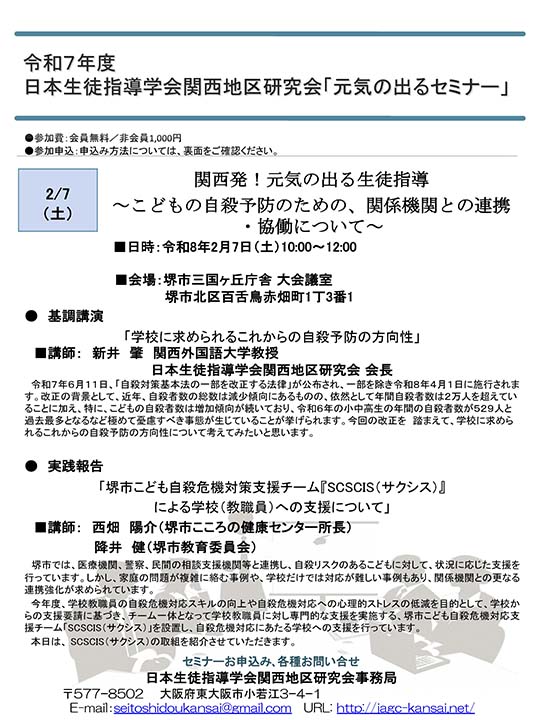 | 講師 | 新井肇(関西外国語大学教授 日本生徒指導学会関西地区研究会 会長) |