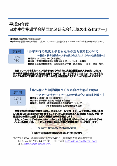 参加申込書を郵送またはFAXにて日本生徒指導学会関西地区研究会事務局に送付、もしくは専用フォームにて申込みください。